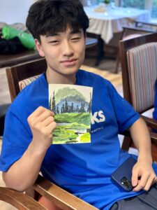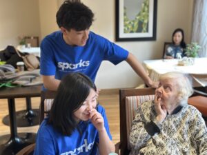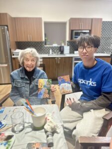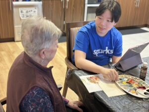 Sparks youth visited the Senior Center to draw scenery-themed pictures. Some seniors, already fans of the young artists, waited in advance to welcome them. The visit brought warmth and connection to everyone there.